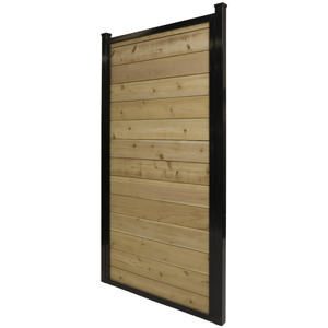 1 panneau hybride en bois est constitué de 14 planches de bois de pin traité 5/4 x 6 x 6, 2 profilés (chanel) replié verticaux et 2 profilés (Channel) non replié 2 horizontaux, 2 poteaux, 2 capuchons